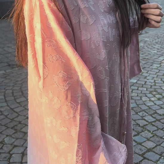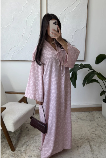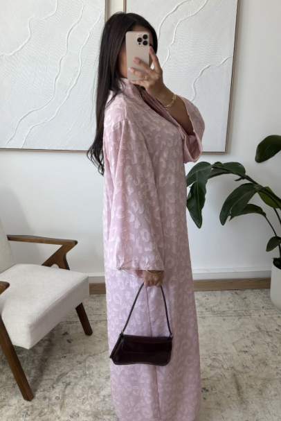 Rosa vacker leopardmönstrad klänning, perfekt för vår och sommar.