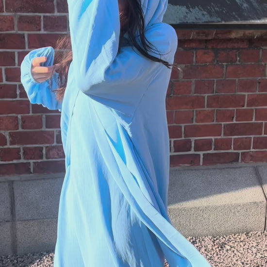 Vacker luftig abaya i himmelsblått.
